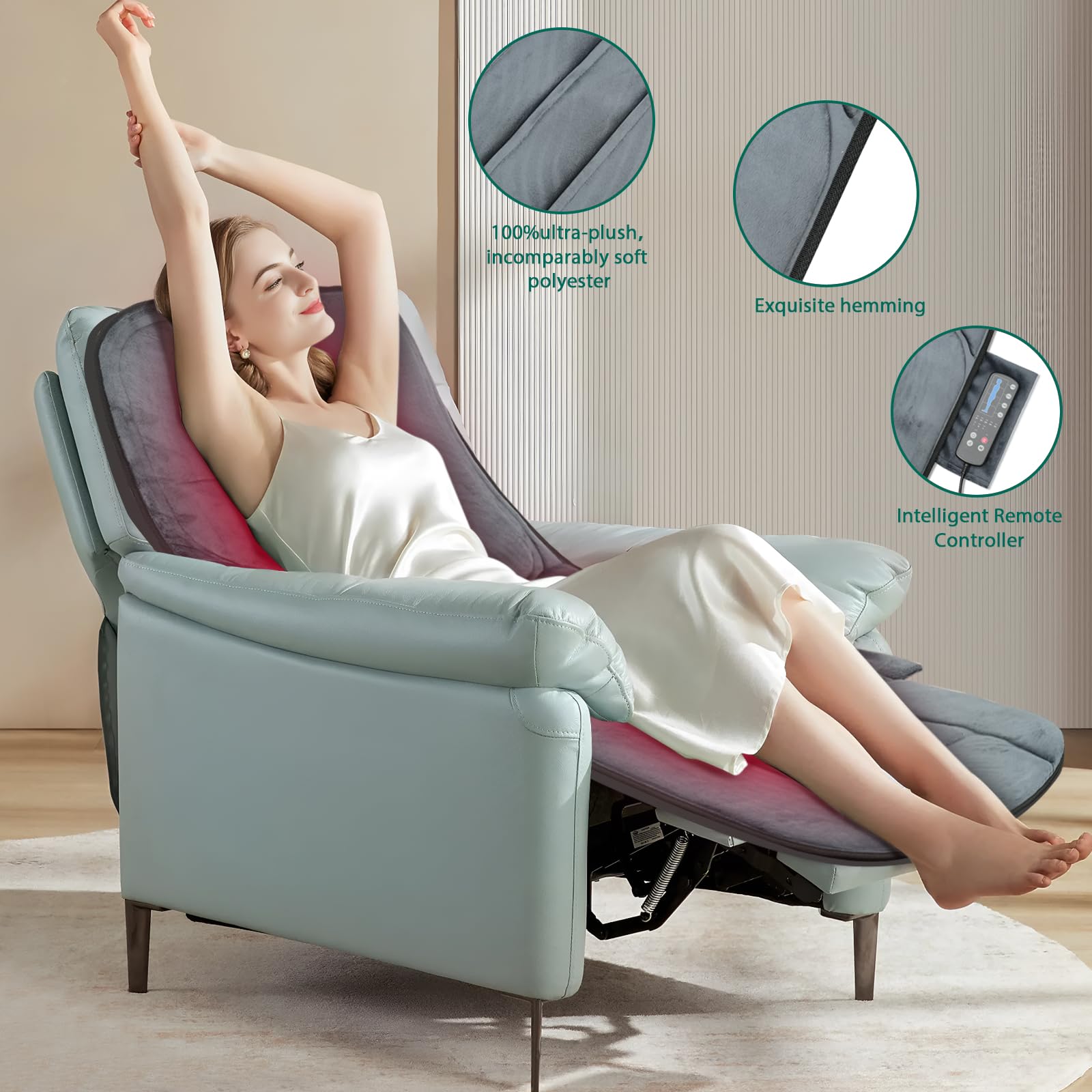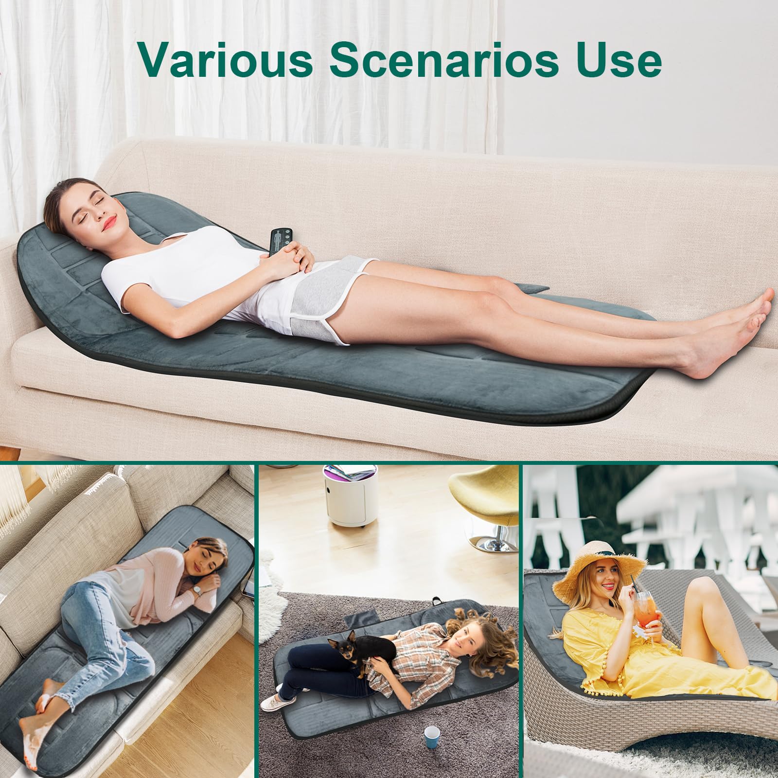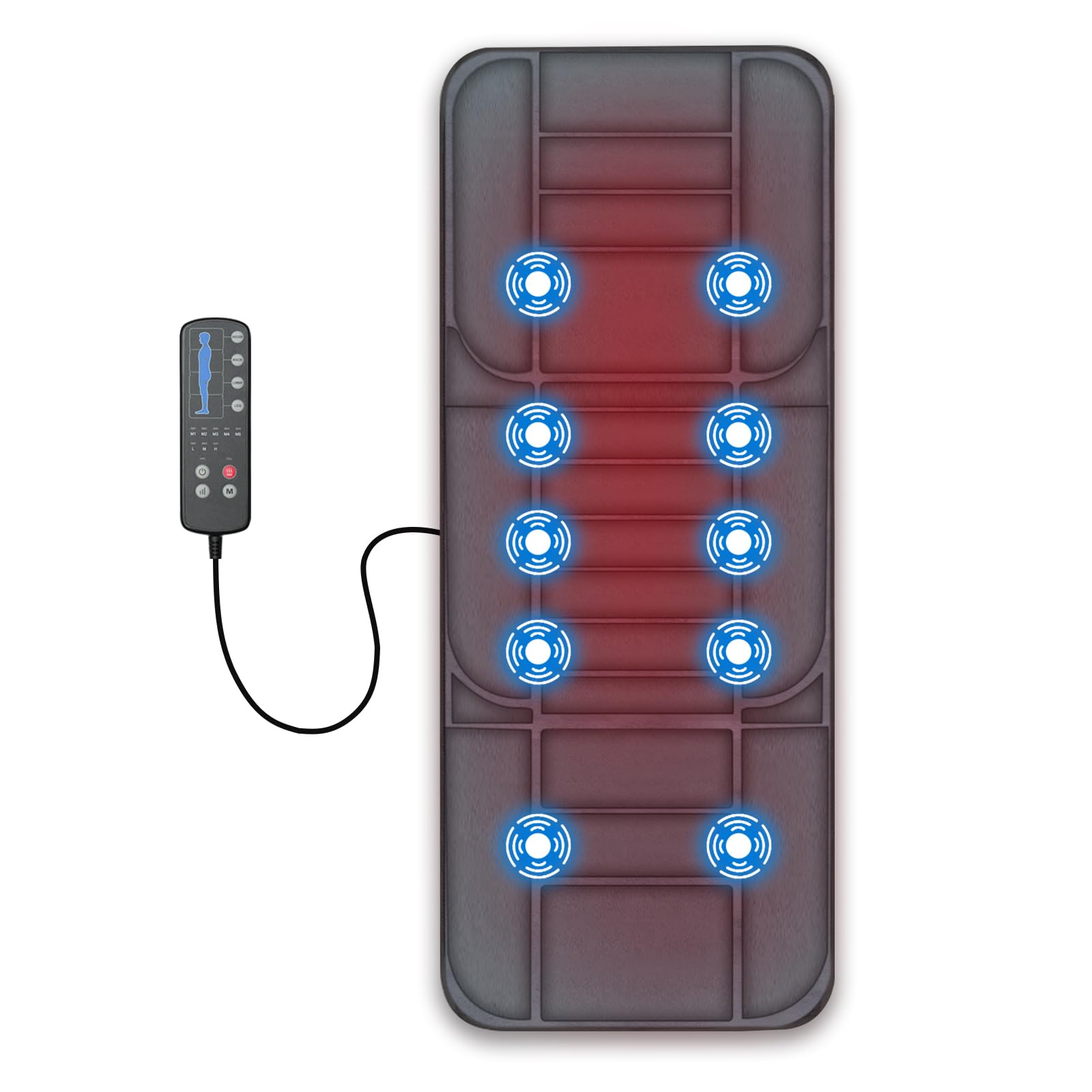 Detalles: Snailax Alfombrilla de masaje de cuerpo completo con calor, almohadilla de masaje con 5 modos de masaje y 3 niveles de vibración, masajeadores de espalda para aliviar el dolor de espalda, colchón de masaje con apagado automático, regalos para mujeres y hombres